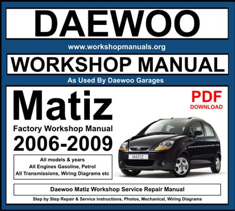 Currently you are looking with regard to an Daewoo Matiz Factory Service Repair Manual example that will we provide here within some type of document formats like as PDF, Doc, Energy Point, and also images that will will make it easier for you to create an Daewoo Matiz Factory Service Repair Manual yourself. For a more clear look, you may open several examples below. All of the illustrations about Daewoo Matiz Factory Service Repair Manual with this web site, we get from many sources so you can create a better file of your own.In case the search you get here does not match what you are seeking for, please utilize the lookup feature that we possess provided here. You are usually free to download something that we provide here, expense cost you the particular slightest.